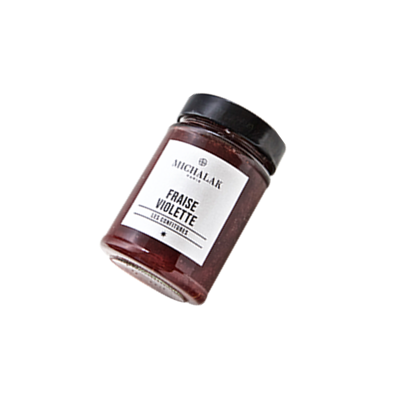 Fraises 59%, sucre, jus de citron, gélifiant (pectine de fruits, arôme de violette 0,05%).