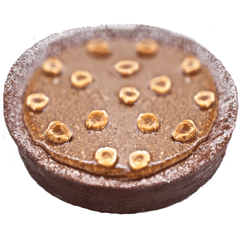 Fondant chocolat Manjari 64%, praliné noisettes du Piémont, noisettes caramélisées.