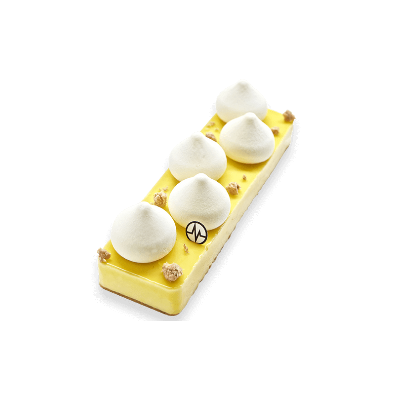 Crumble & biscuit, punch citron vert, crémeux allégé au yuzu, ganache montée au citron vert, cœur coulant au citron.